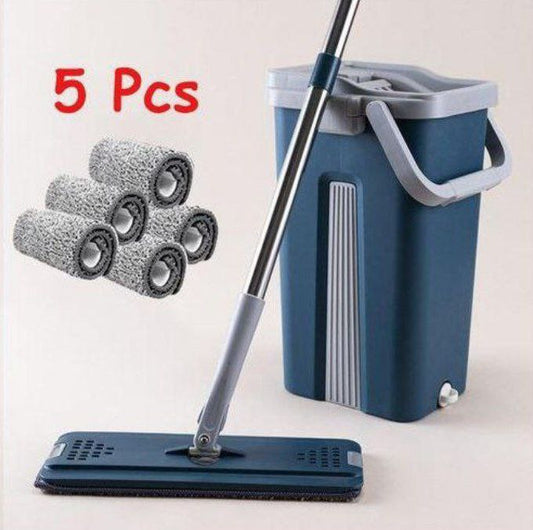 Balai Plat Auto-Nettoyant avec Seau à Roues – Propreté Facile et Efficace