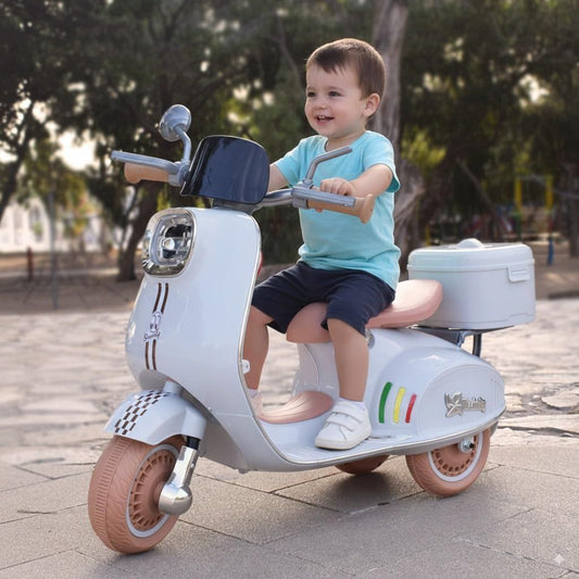 Moto Vespa Électrique Enfant 12V – Scooter Premium avec Sons & Lumières | 2 à 6 ans