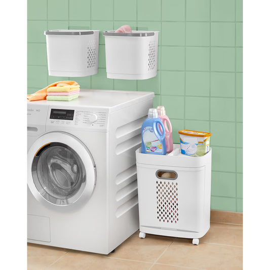 Panier à Linge 3 en 1 à Roulettes – 3 Bacs + Étagère (PP)