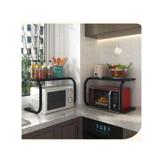 Support 2 niveaux pour four & micro-ondes – étagère de comptoir en métal robuste avec espace en L (noir)