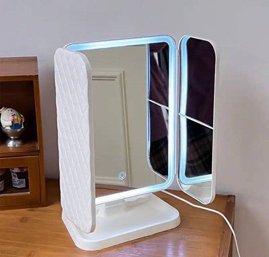 Miroir de maquillage trifold LED – Éclat & précision à chaque plan