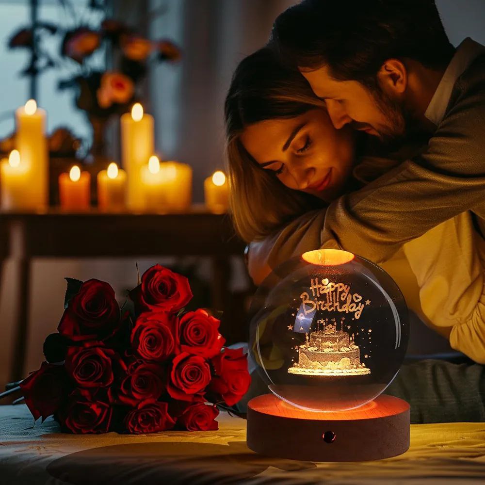 Boule de Cristal 3D Éclatante - Lampe de Table Unique