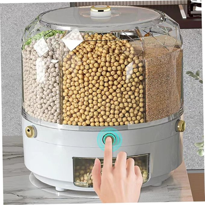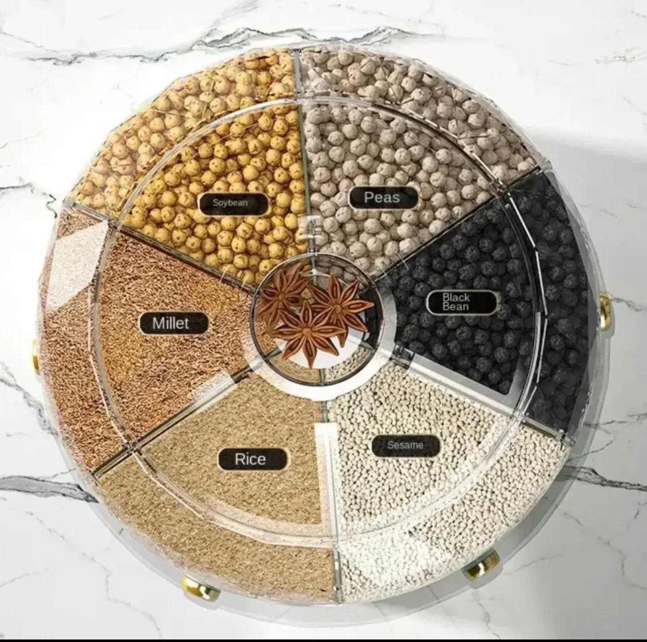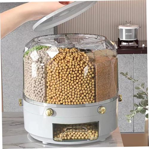 Organisez votre cuisine avec ce distributeur rotatif à 360° conçu pour conserver vos aliments secs frais et protégés. Avec ses 6 compartiments, sa grande capacité (8 kg) et son système hermétique, dites adieu au désordre et profitez d’un accès facile à vos céréales, riz, farine, café et bien plus encore.