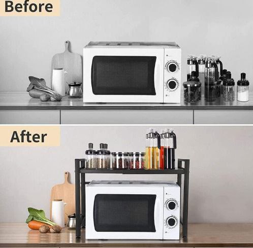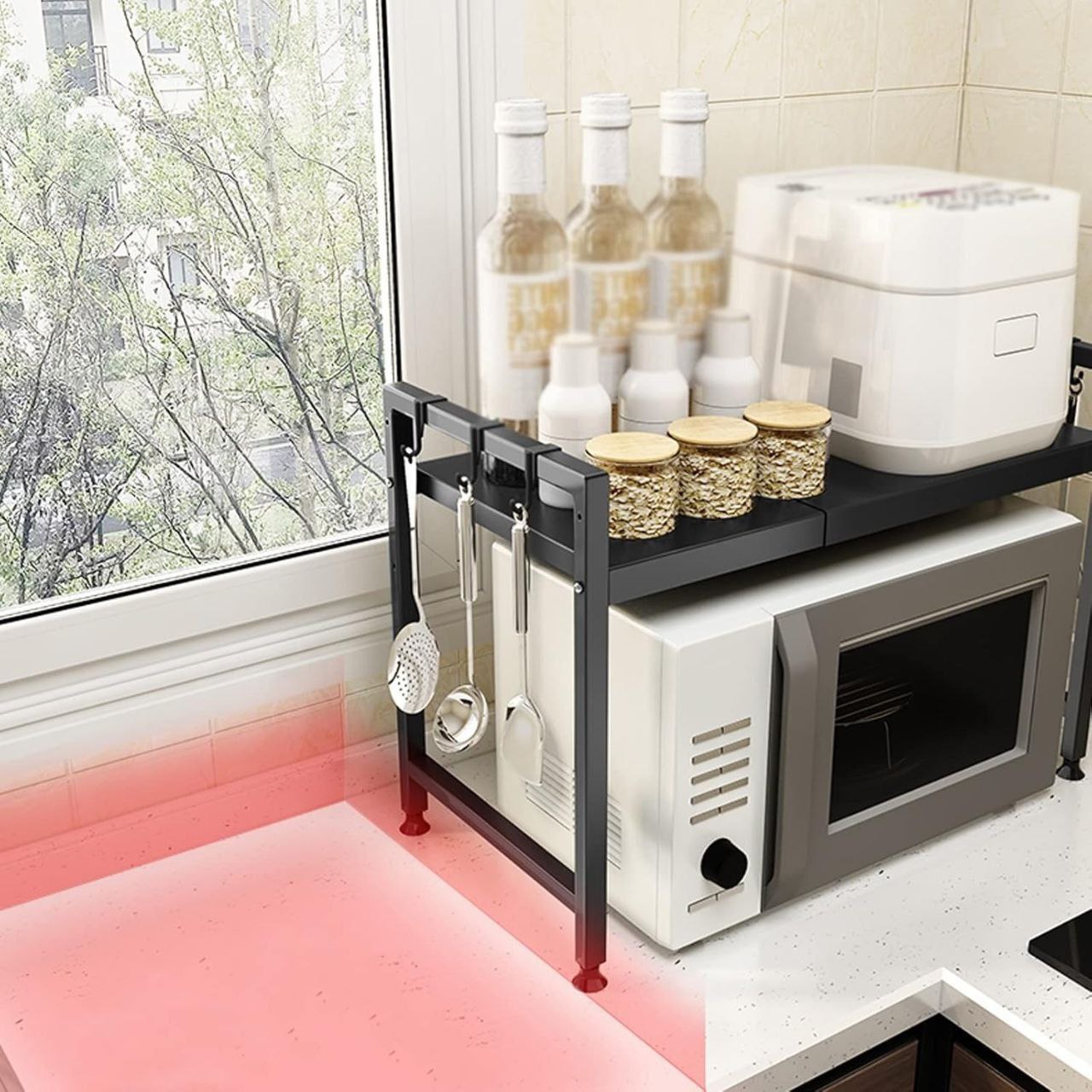 Cette étagère réglable pour micro-ondes est un indispensable pour toute cuisine moderne, apportant à la fois organisation et fonctionnalité à votre espace.