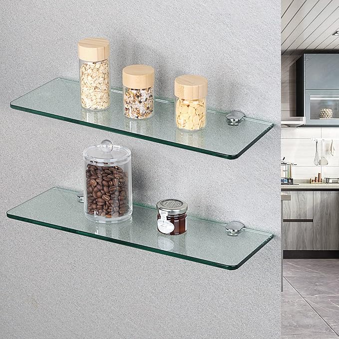 Apportez une touche de modernité et d’organisation à votre salle de bain, cuisine ou chambre avec ces superbes étagères murales en verre.