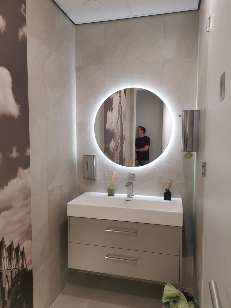 Le miroir LED rond Bm-L185 (60×60 cm) allie style moderne et praticité. Son éclairage LED intégré diffuse une lumière douce et uniforme, parfait pour créer une ambiance contemporaine dans votre salle de bain. Conçu pour résister à l’humidité et facile à installer, il s'adapte à tous les espaces. Bénéficiez d'une garantie d'un an. N'attendez plus,