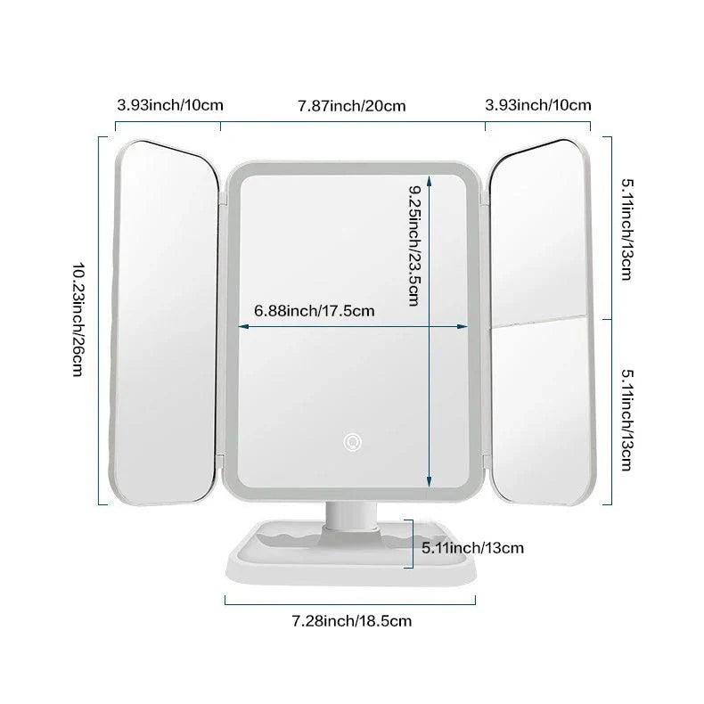 Miroir de maquillage trifold LED – Éclat & précision à chaque plan