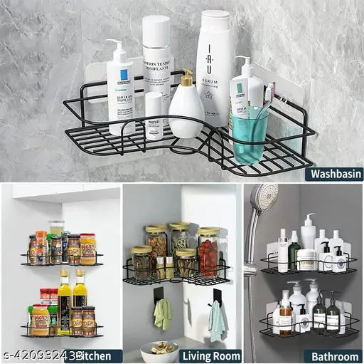 Optimisez votre espace avec ce lot de 2 étagères d’angle murales, idéales pour la salle de bain ou la cuisine. Faciles à installer sans percer, elles allient élégance, robustesse et praticité !