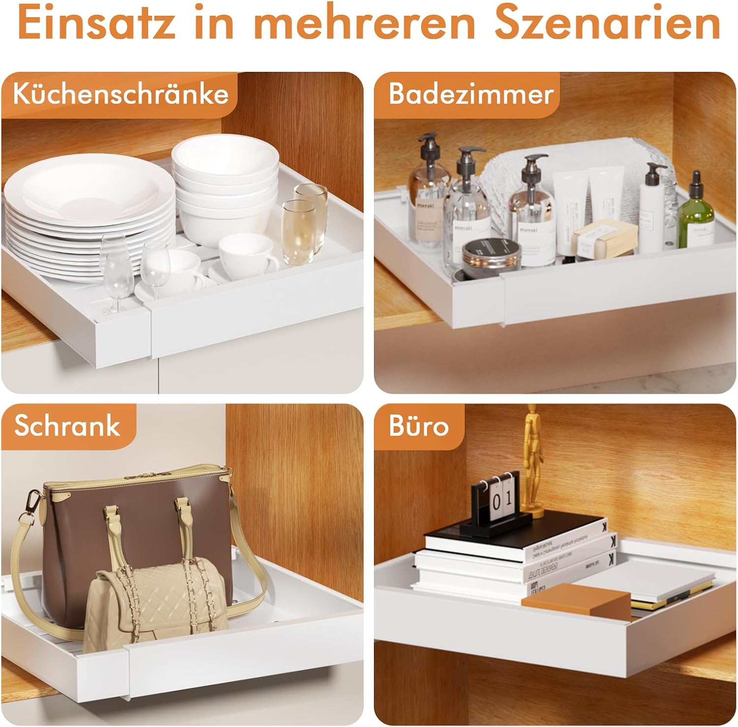 Glissement Doux et Silencieux : Profitez d’un accès facile aux objets stockés grâce au système de rail à glissement doux, qui fonctionne silencieusement, même sous une charge importante. L'organisateur glisse jusqu’à 12 cm, vous permettant d'atteindre les coins les plus reculés de votre placard sans effort.