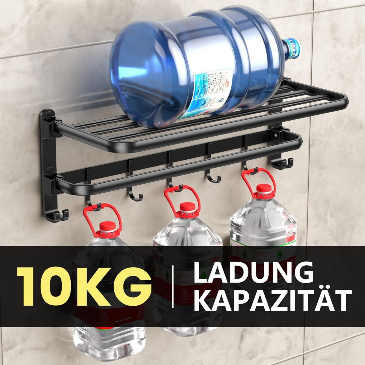 Porte-serviettes mural en aluminium noir mat avec étagère et 7 crochets – 56,5 cm