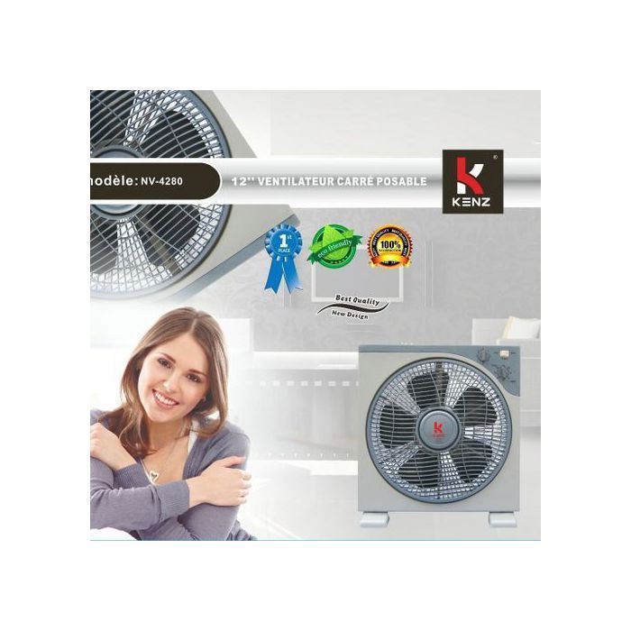 Ce ventilateur carré pratique est l’allié idéal pour vos journées de chaleur. Avec ses réglages de vitesse personnalisables et sa fonction d’oscillation, il s'adapte à vos besoins spécifiques, offrant un air frais et agréable tout en occupant un minimum d’espace.