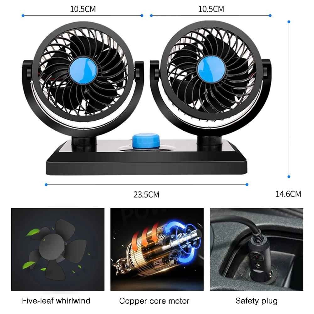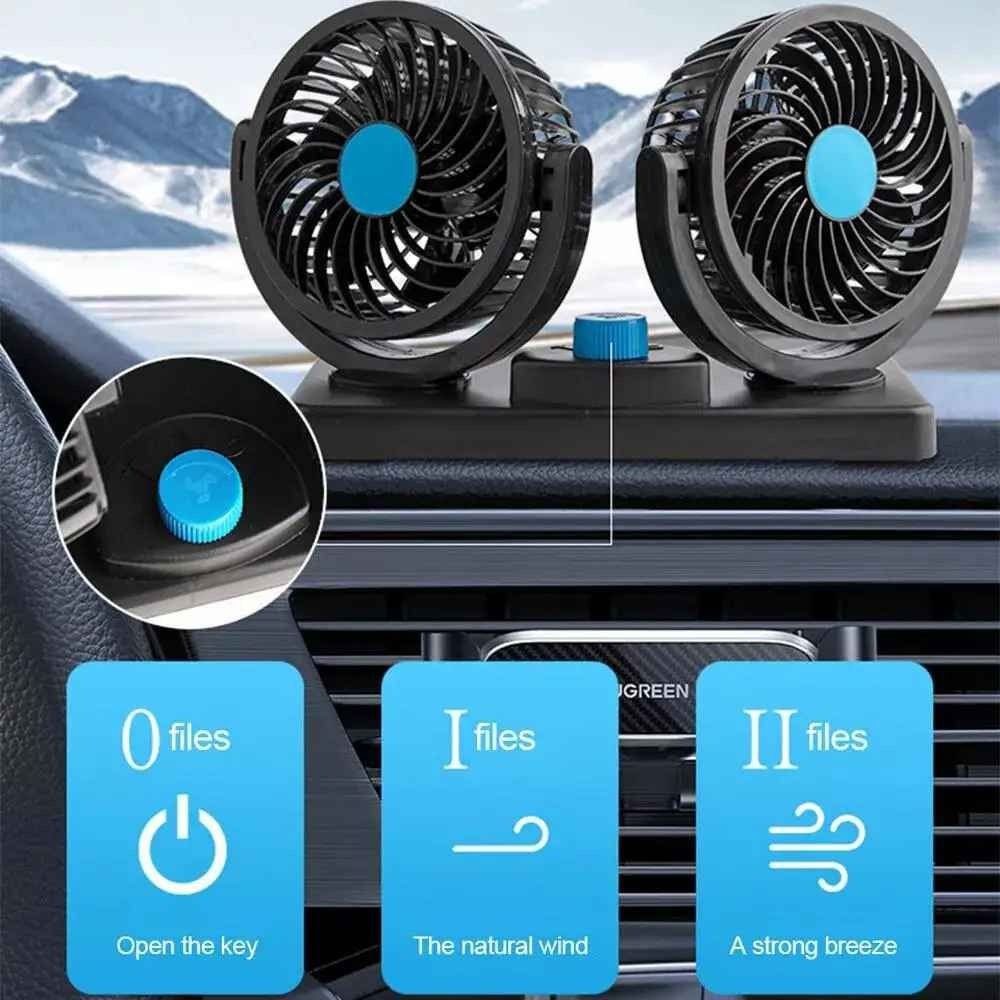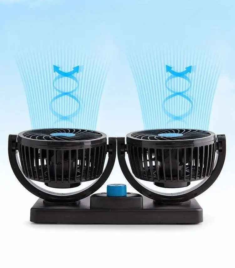Ventilateur de Voiture Double Tête 360° – Refroidissement Puissant et Silencieux 12V/24V