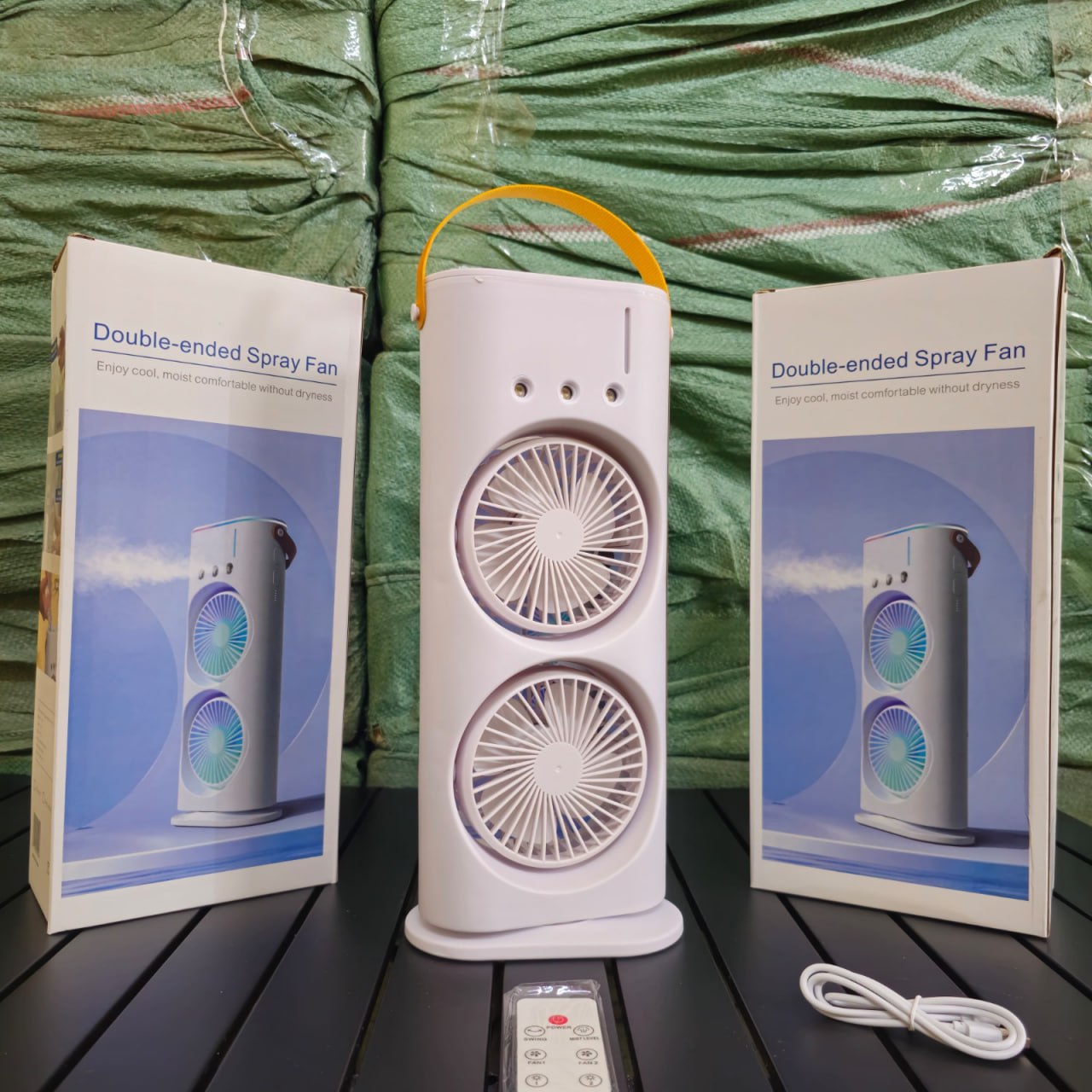 Ventilateur Électrique Double Tête avec Brumisation – Refroidissement Puissant et Silencieux